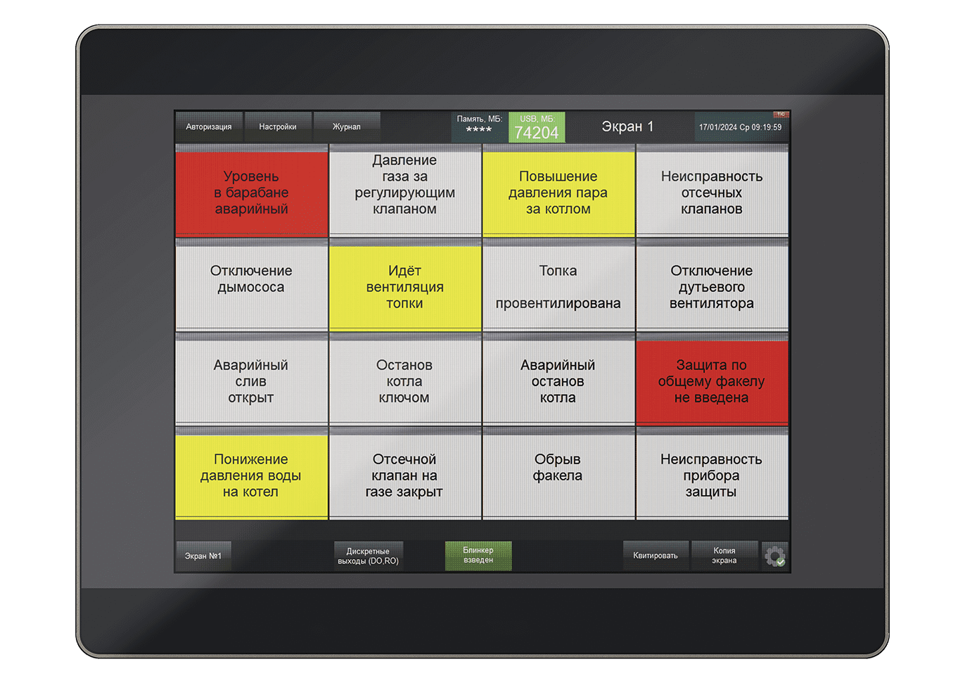 Панели сигнализации являются отличной альтернативой светосигнальным приборам, управляющим устройствам. Применение операторских панелей позволяет избежать установки многочисленных переключателей, средств ввода, индикаторов. Все эти устройства не только снижают энергоэффективность объекта, но и загромождают рабочую среду, в то время как сигнальное табло, напротив, оптимизирует рабочее пространство, увеличивает скорость реагирования и упрощает работу с большими объемами параметров в разы.