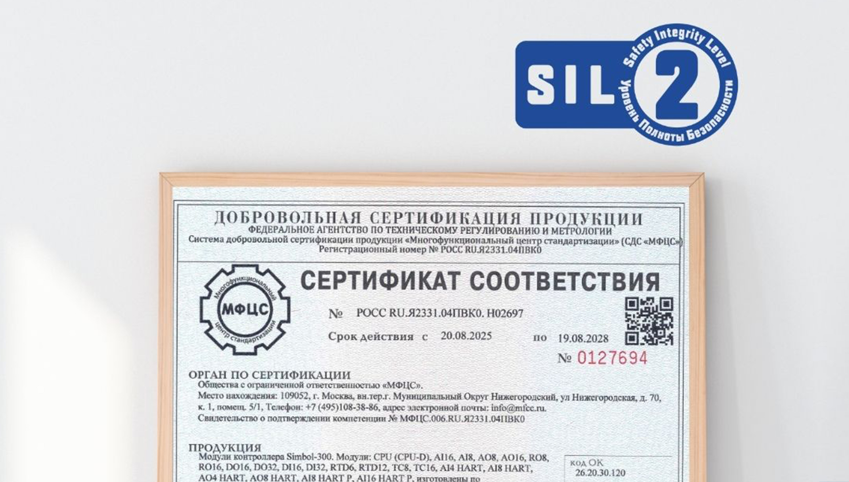Сертификат SIL2 подтверждает высокий уровень функциональной безопасности и надежности оборудования и свидетельствует о том, что устройство прошло строгую оценочную экспертизу и снижает риск аварийных ситуаций как минимум в 100 раз, соответствуя международным стандартам безопасности для промышленных систем.